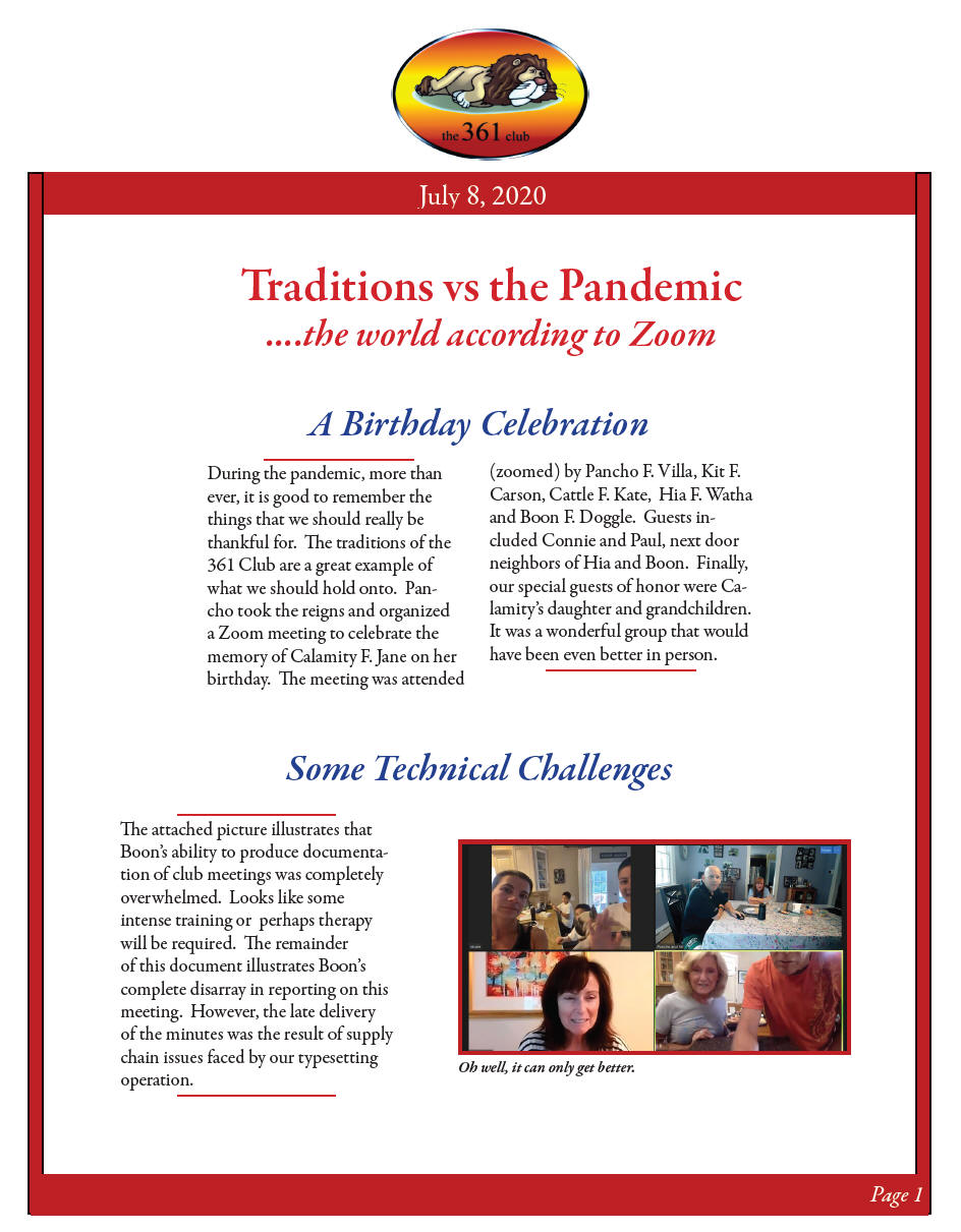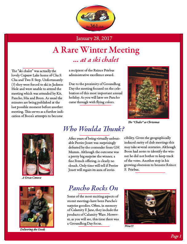 As is tradition, meeting minutes from recent meetings will be produced and posted ONLY immediately prior to the next scheduled meeting.